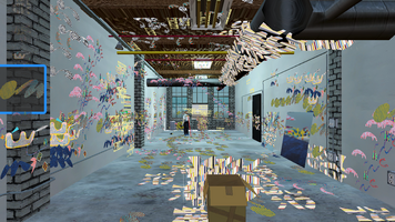 As an artist its cool to have the tools to be able to abstract my entire process from being a human that goes into a studio to create work, all the way to a final 2d picture that functions like a painting, into a simulation (video game) that others can play. other people will be able to understand my work very simply just by playing this game and make this game will give more context to what i am trying to do in the studio.